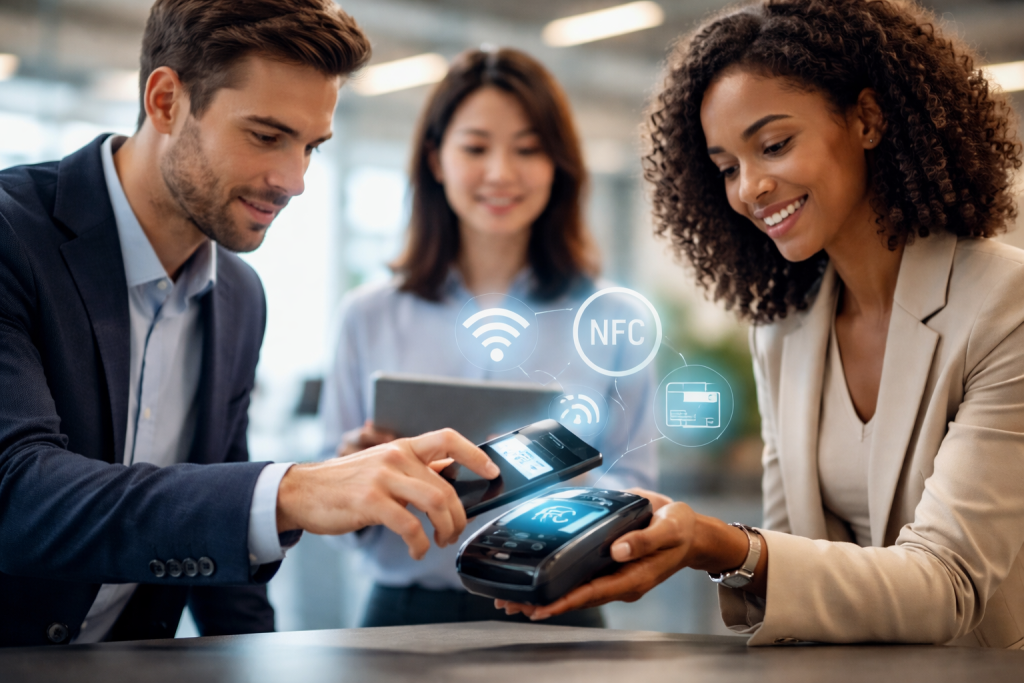 כדי להבין כיצד טכנולוגיית NFC משנה בפועל את הדרך שבה אנחנו מתקשרים, כדאי להתבונן בכמה דוגמאות יומיומיות. בחנות קטנה, הלקוח מצמיד את הסמארטפון לקורא בקופה, באמצעות אפליקציית תשלום, והעסקה מאושרת בתוך רגעים בודדים ללא צורך בכרטיס אשראי פיזי או במזומן. כך התור מתקצר, תהליך התשלום פשוט יותר, ורמת האבטחה עולה בזכות אימות ביומטרי או קוד סודי.